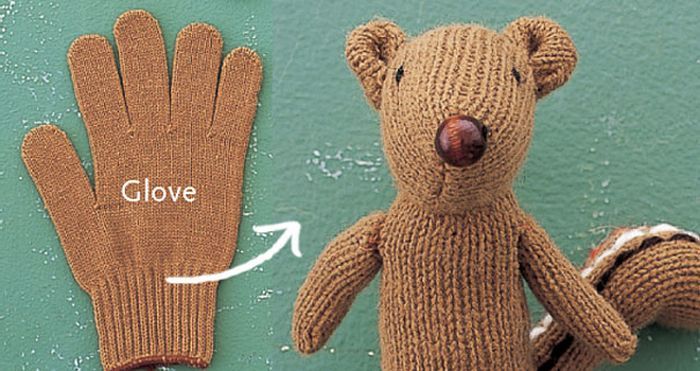 Aquí el bricolajero ha reciclado un guante de lana creando, prácticamente de la nada un osito de lana.