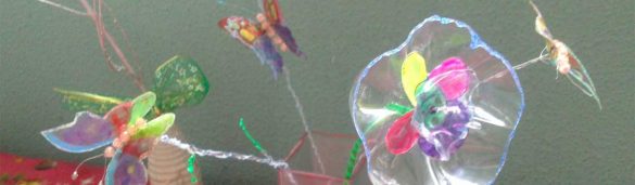 Jarrón mosaico reciclando botella pet y cáscaras de huevo